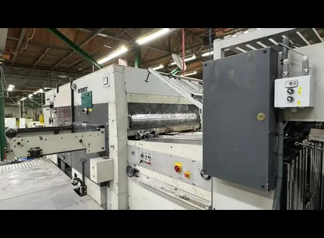 Manufacturer: BOBST SA (Lausanne, Switzerland) Machine Type / Model: AUTOPLATINE SP 102-E Cutting Force: 2.5 MN (250 t) Speed: Up to 7,500 sheets/hour Sheet Size: 102 × 72 cm Sheet Size: 40 × 35 cm Made in: S ..... read more