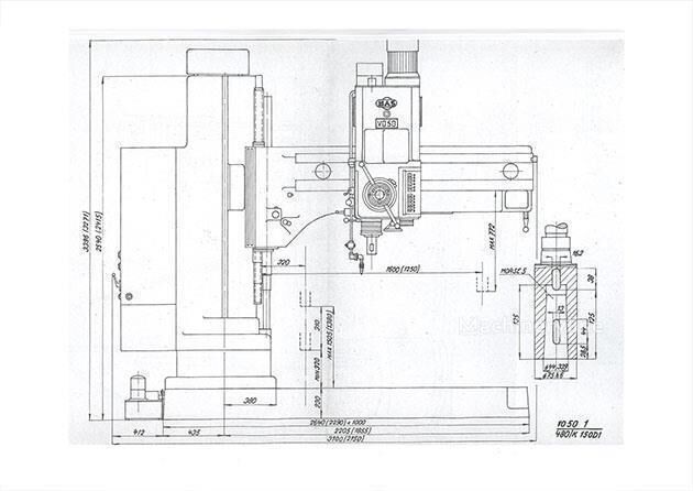 bore capacity in steel (diameter) 50 mm arm length 1250 mm distance spindle/base plate 1350 mm bore capacity in cast iron 60 mm spindle taper MK 5 spindle turning speed range 12,5 - 1000 U/min feeds 0,06 - 0,5 ..... read more