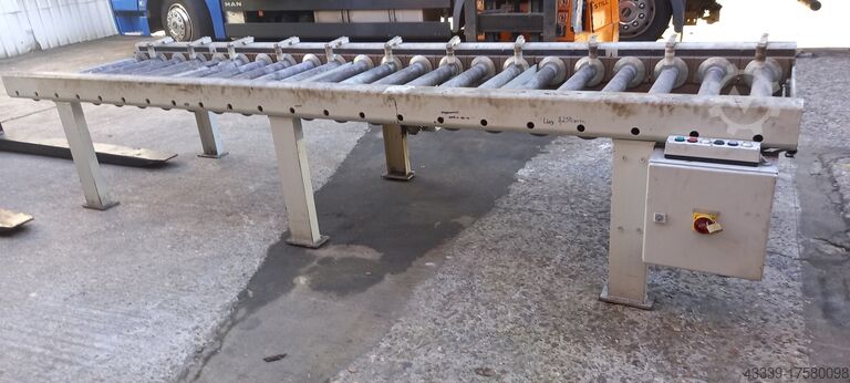 Motorized roller table MAYER Type:RGM 770-4250 Year 2000 Roller diameter : 70 mm Roller conveyor width : 770 mm Roller height from floor : 760 mm Fjweu Euccov Hiipsft Total length : 4250 mm Good condition . The ..... read more