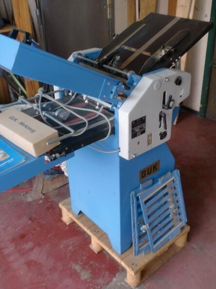 Marke: Grieser & Kunzmann GUK buckle plate folder GUK FA 54-4-F-TH with stream delivery S-520 for prefold products from 2002 Max. Format: 54 x 80 cm Min format: 16 x 16 cm parallel break Speed: 30-160 m/min or ..... read more