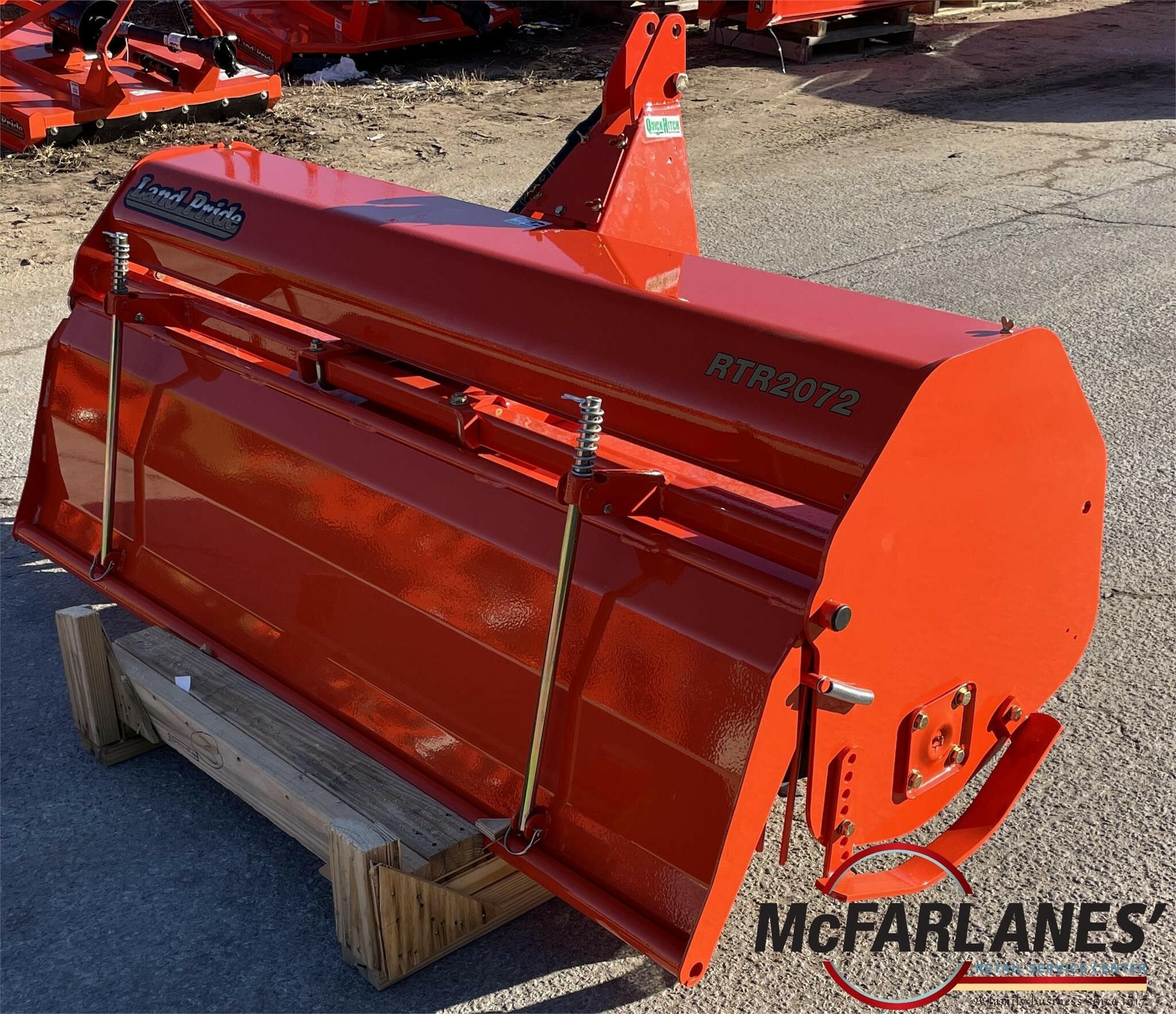 Land Pride RTR2072♦ Revers tine rotation tiller♦ 72" working width, 7" max tilling depth♦ 6 C-shaped tines per flange♦ Horsepower requirement of 23-75HP♦ Slip clutch protected 540 PTO♦ Quick hitch c ..... read more