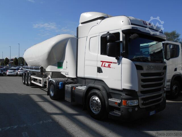 SCANIA R450 TRACTOR UNIT WITH SPITZER SEMITRAILER FOR CEMENT TRANSPORT 715,927 KM YEAR: 2016 AUTOMATIC TRANSMISSION + RETARDER WHEELBASE: 3750 mm AXLES: 4X2 TYRES FRONT 385/65 R22.5 REAR 315/80 R22.5 AT 50% DIS ..... read more