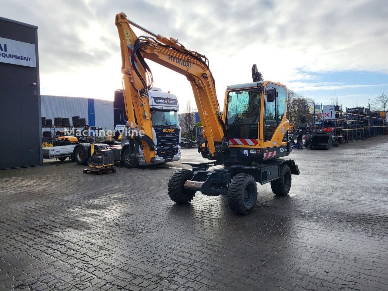 648448 Machineryline https://machinelista.com/machine/hyundai-mobilbagger-r55w-9a-wheeled-excavator-2/