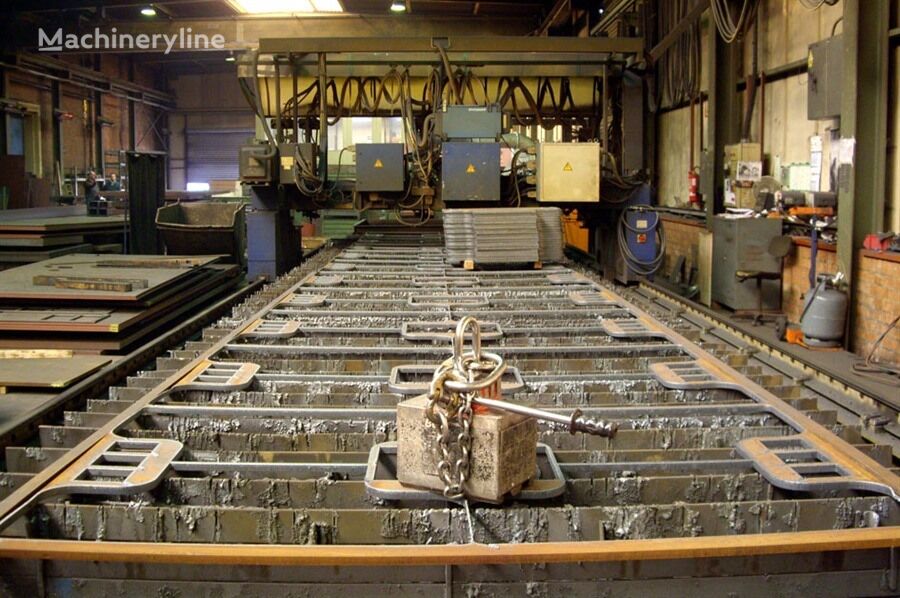 Messer Griesheim Omnimat L4000 2 plasma cutting heads powered by 2 Hypertherm HT2000 sources max cutting cap: 50 mm cutting table: 21 000 x 3000 mm - table features extractor valvesnbsp center-center distance o ..... read more